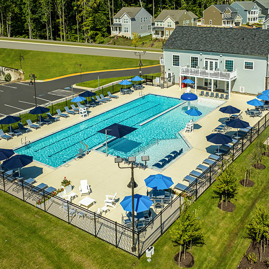 Sporting a casual (and comfortable) Tidewater-inspired style, our new Woods Rec Center features a family swimming pool, locker rooms and event space with a warming kitchen. It’s the perfect hangout for hosting everything from lively parties and spirited card games to poolside family get-togethers where everyone can easily slip into a summertime mood.
